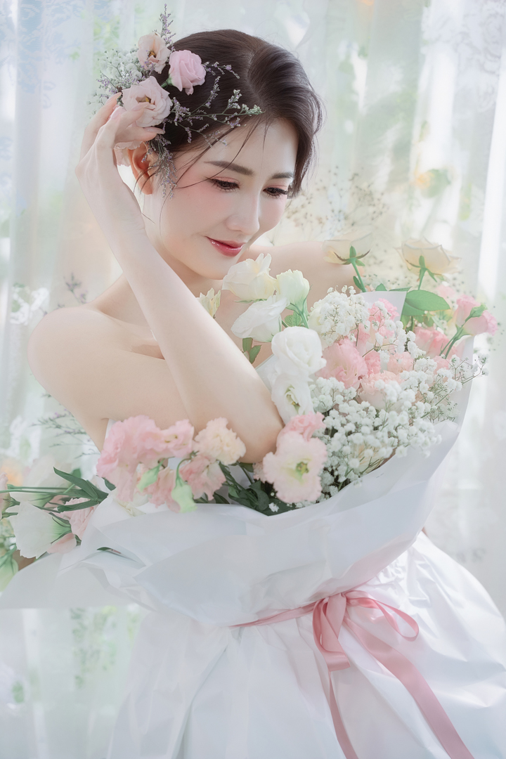 小紅書寫真最重要的是「主題感」。艾蜜寫真 會先依你喜歡的氛圍與本季流行風格,為你打造一個適合你的主題。例如奢華名媛風會打造微奢氛圍;田園文青風會搭配花籃與小花;花束寫真會做乾淨感窗光。你不是站在背景前拍照,而是走進屬於你的主題氛圍。